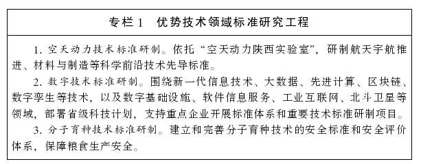 (一)加强关键优势技术领域标准研究。聚焦人工智能、量子科学、生命科学、空间技术、人类遗传资源管理等原始创新关键领域,开展标准化前沿研究。围绕集成电路、高端数控机床、能源化工等领域“卡脖子”技术攻关,同步推动标准研究、贯彻实施与产业推广。以稀有金属材料、半导体与集成电路、作物育种等我省优势领域为重点,推动先进技术标准研究与贯彻实施,提升行业影响力和话语权。